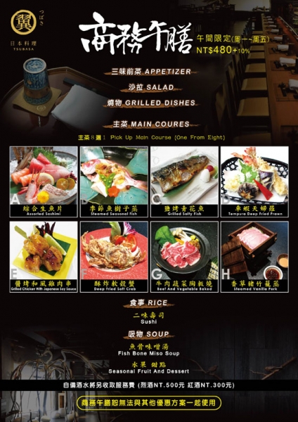 「商務午膳套餐」6/1上市,商務午膳,周一至周五午間限定,NT$ 480 + 10%